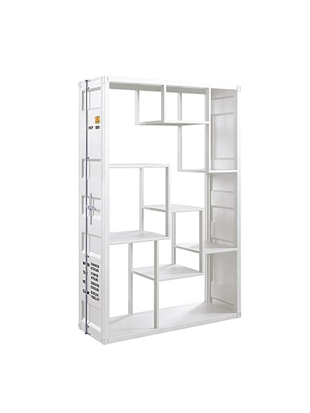 Product Details : KD, Rectangular Shelf Rack : Storage: 9 Open Compartments (9 Metal Shelves) : Features: Metal Frame, Recessed Panels (Cargo Container Panels), Full-Length Container Lock : (NO LEGS) :: CONSTRUCTION :: Metal Case: Iron Plate