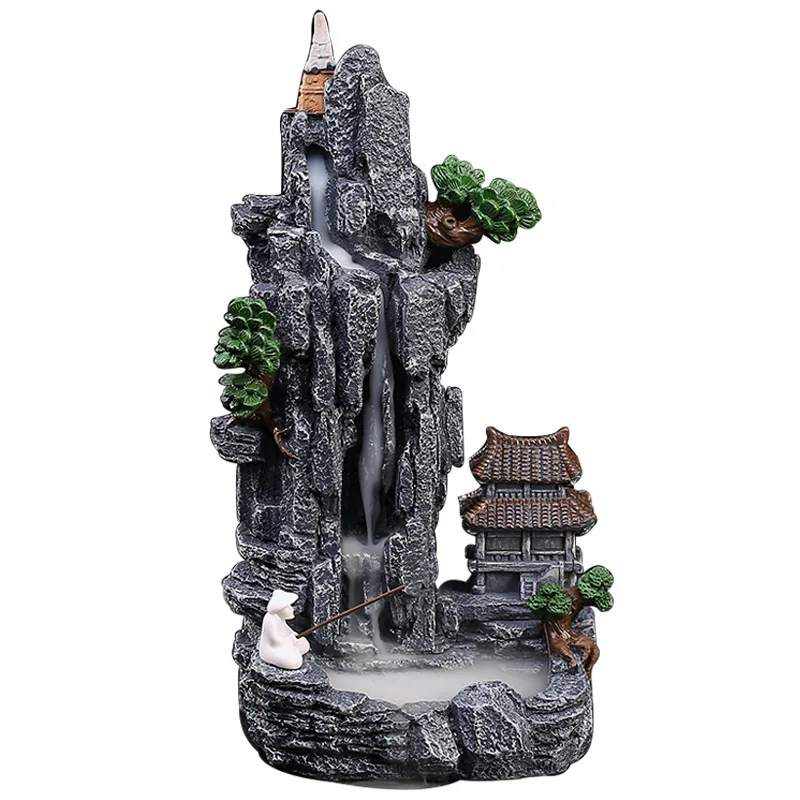 Large resin high mountain flowing water backflow incense burner, rockery home indoor incense base sandalwood incense burner