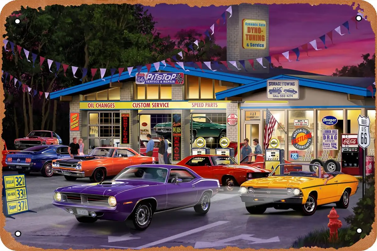 Vintage RT 66 Muscle Car Poster Retro Tin Sign Vintage Look Metal Sign for Cafe Bar Man Cave Garage Home Wall Art Decor Gift 12